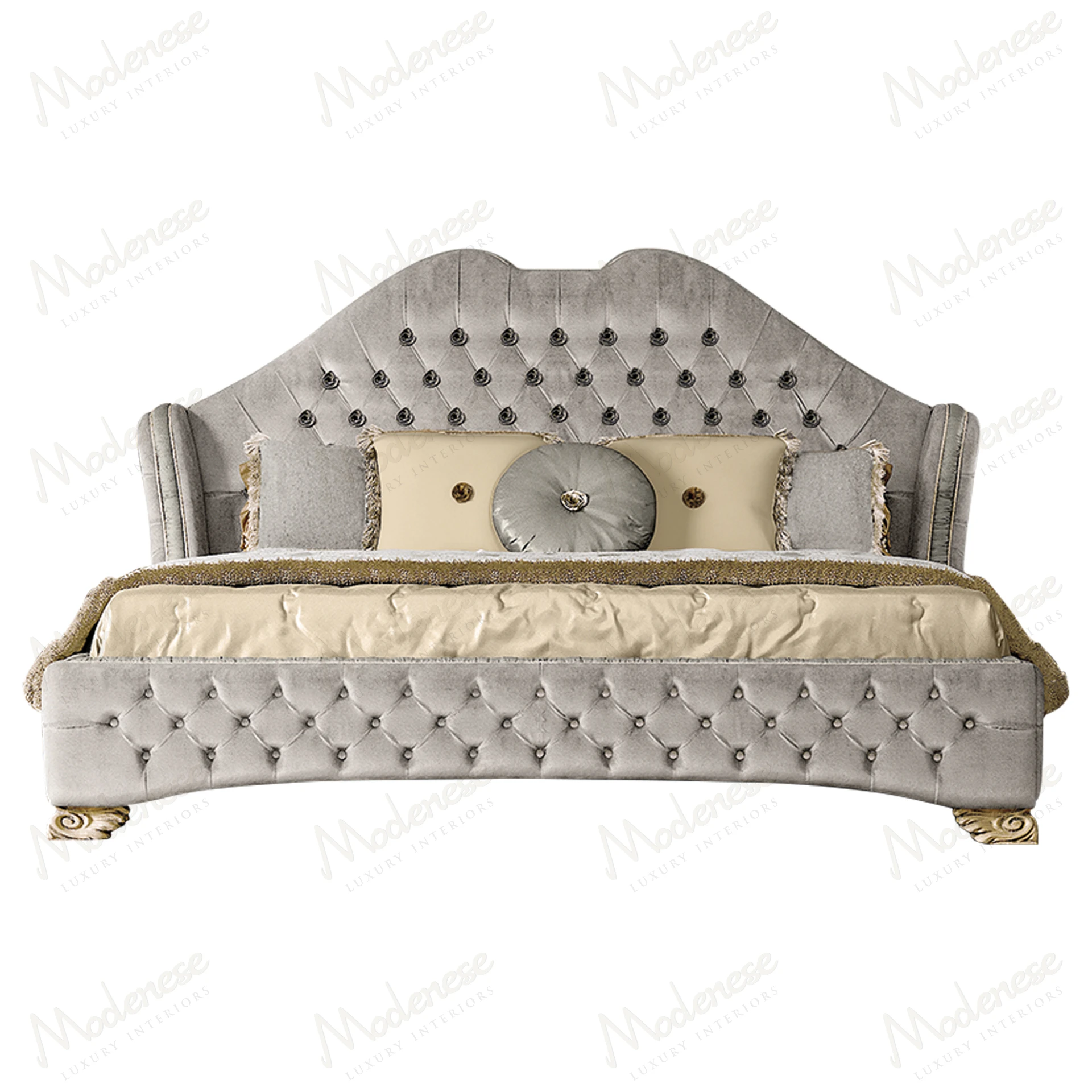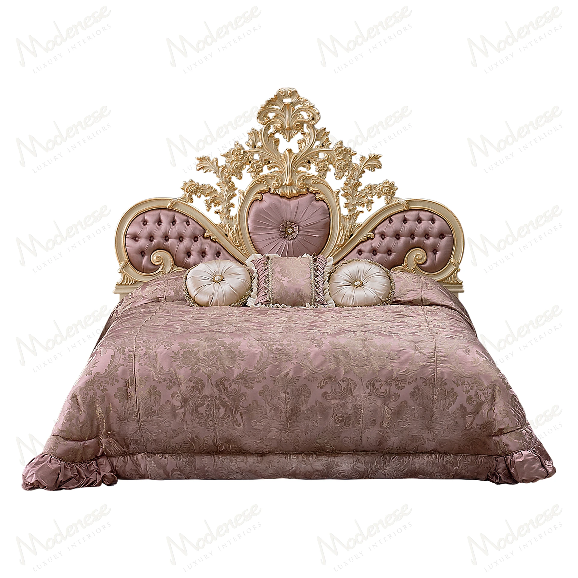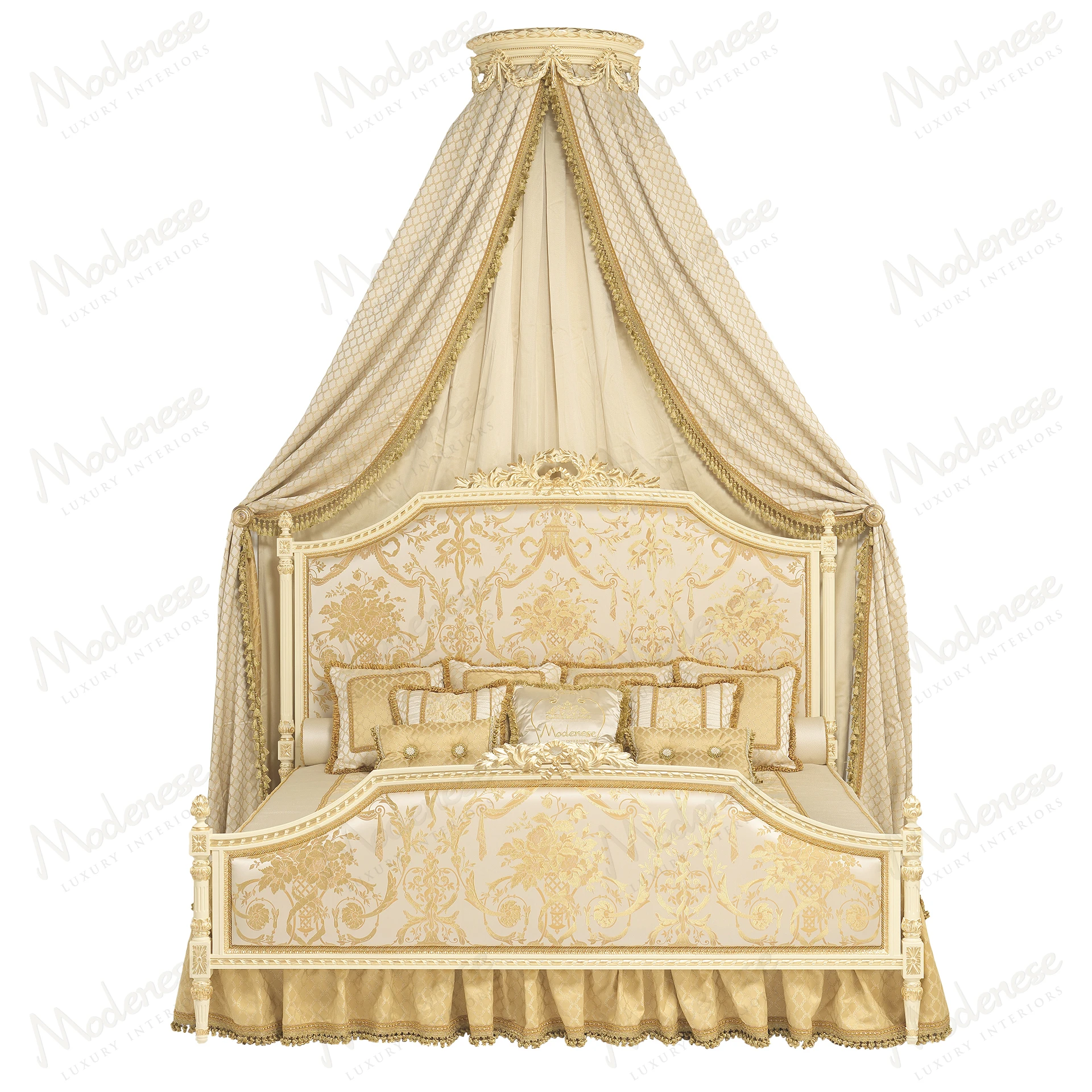 床顶篷和床身:经典胡桃木饰面,金箔细节
